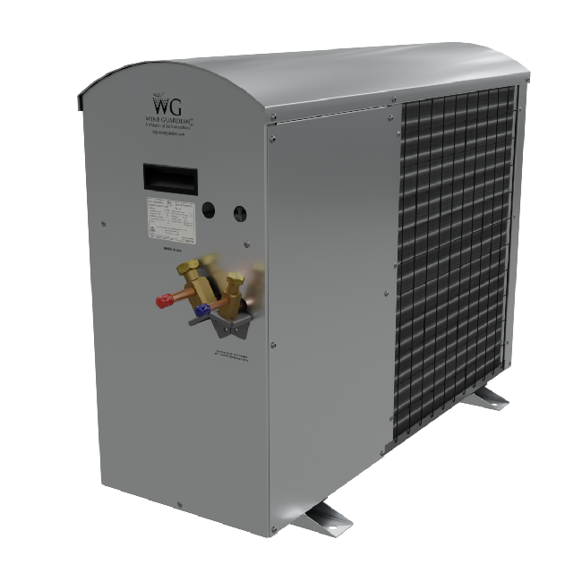 The WGC60 ceiling mount cooling system is a split wine conditioning system that cools small- to mid-size wine storage spaces that have no room to install a traditional system. This unit was designed specifically for ceiling-mounting and fits comfortably between standard joist construction— making it ideal for applications such as a wine storage display with living space around it or an all-glass wine room. The maximum cooling capacity for the WGC60 ceiling mount system is 900 Watts.